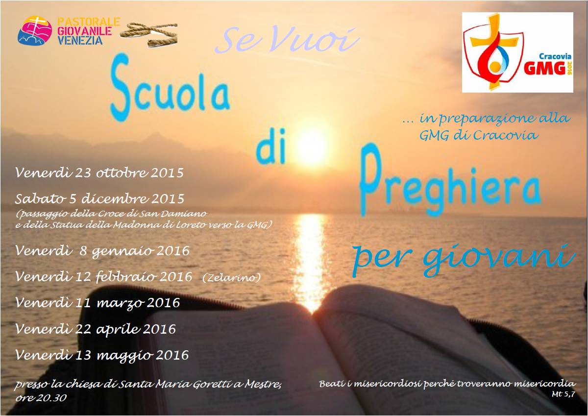 La scuola di preghiera è un’occasione offerta a tutti i giovanissimi e giovani della Diocesi per una feconda sosta spirituale. Animata a turno dai gruppi parrocchiali, prevede la testimonianza, l’adorazione eucaristica, la preghiera, il canto, la possibilità di confessarsi… Al termine dell’incontro, il tempo della convivialità e dello scambio fraterno. “Se vuoi”…