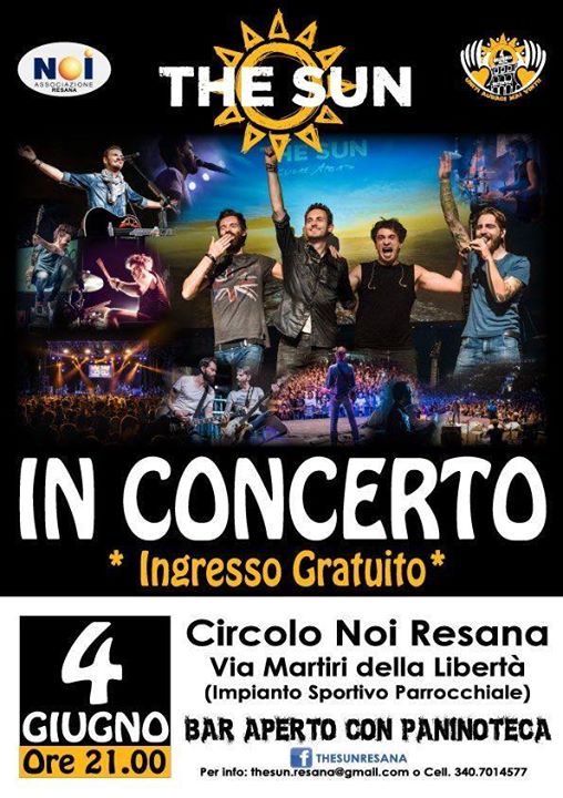 Concerto elettrico dei The Sun sabato 4 giugno a Resana (TV), con inizio alle ore 21.30.