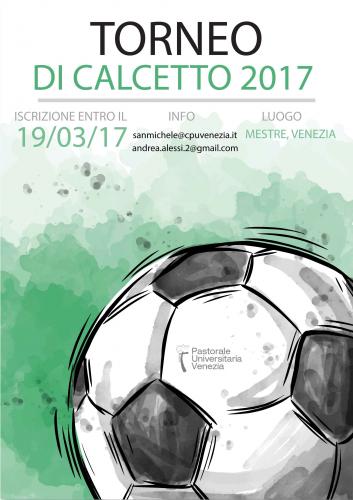 La Pastorale universitaria veneziana promuove il Torneo di calcetto 2017, che si terrà prossimamente a Mestre. Per info e adesioni: sanmichele@cpuvenezia.it oppure andrea.alessi2@gmail.com.