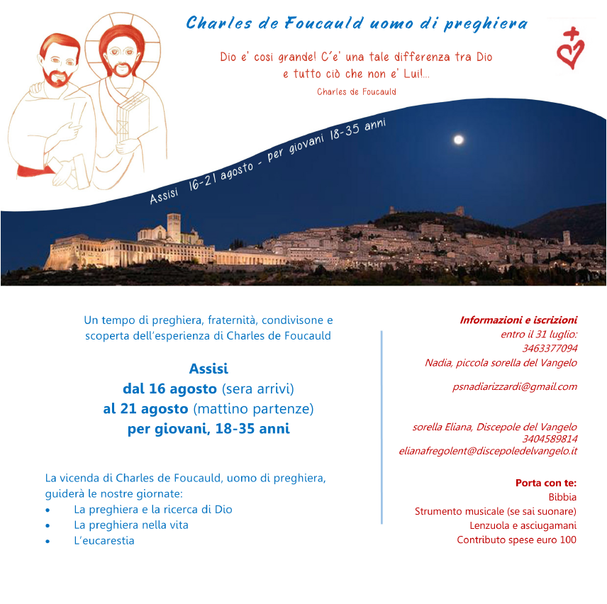 Proposta estiva sulle orme di Charles De Foucauld Pubblicato il Maggio 25, 2017 - Attività ed eventi, Giovani, Spiritualità