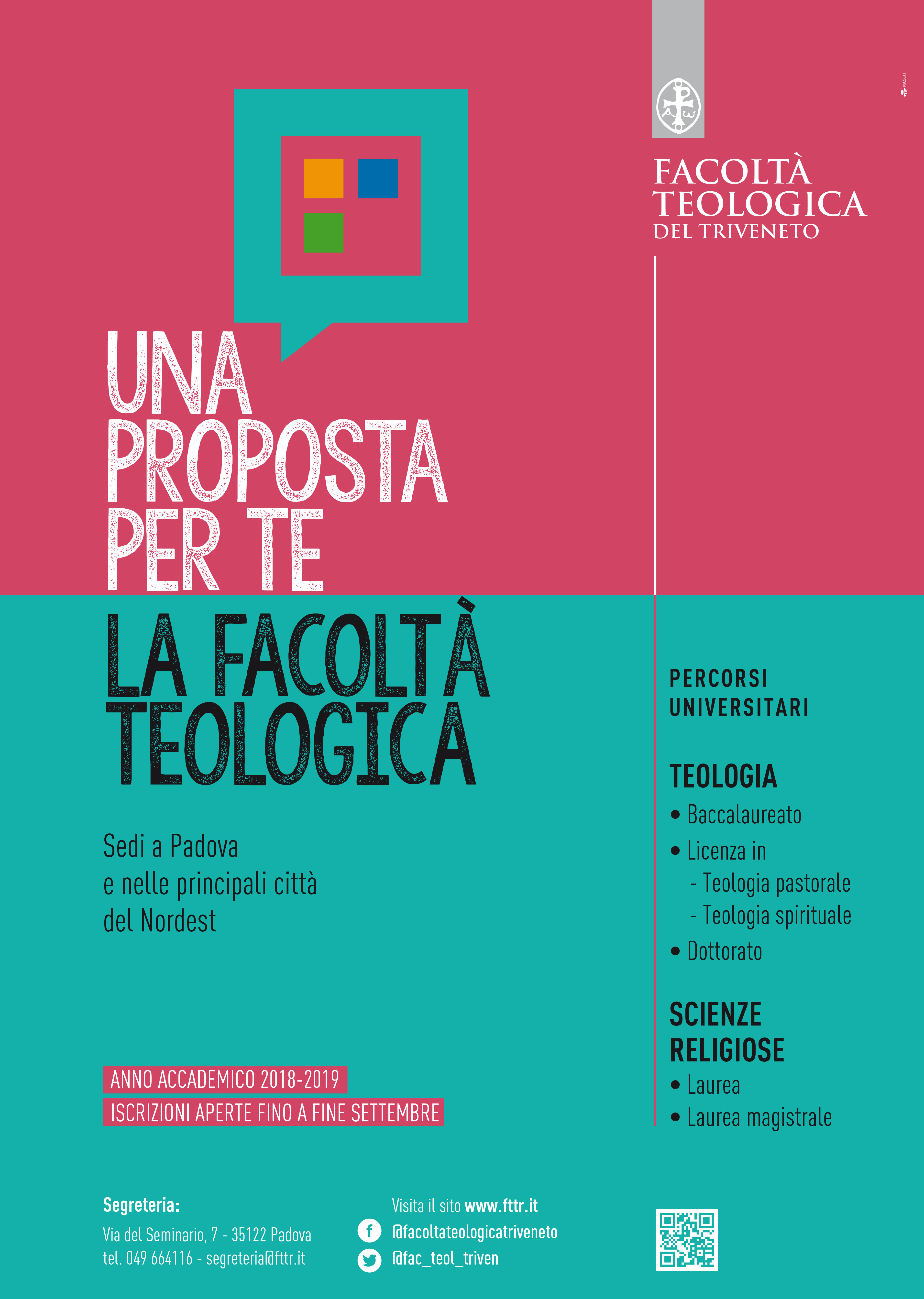 Le ISCRIZIONI alla Facoltà teologica del Triveneto sono aperte FINO A FINE SETTEMBRE (tranne il periodo di chiusura della segreteria, dal 21 luglio al 27 agosto).