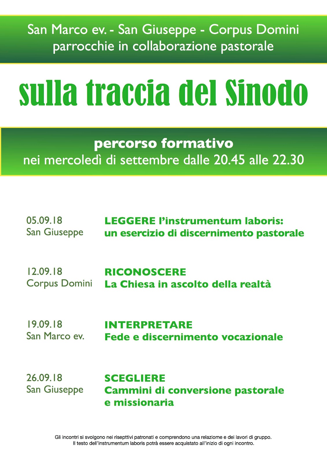 La Collaborazione mestrina S. Marco-S. Giuseppe-Corpus Domini apre le porte per un percorso formativo in 4 serate sul prossimo Sinodo dei giovani, in particolare il testo dell’Instrumentum Laboris.