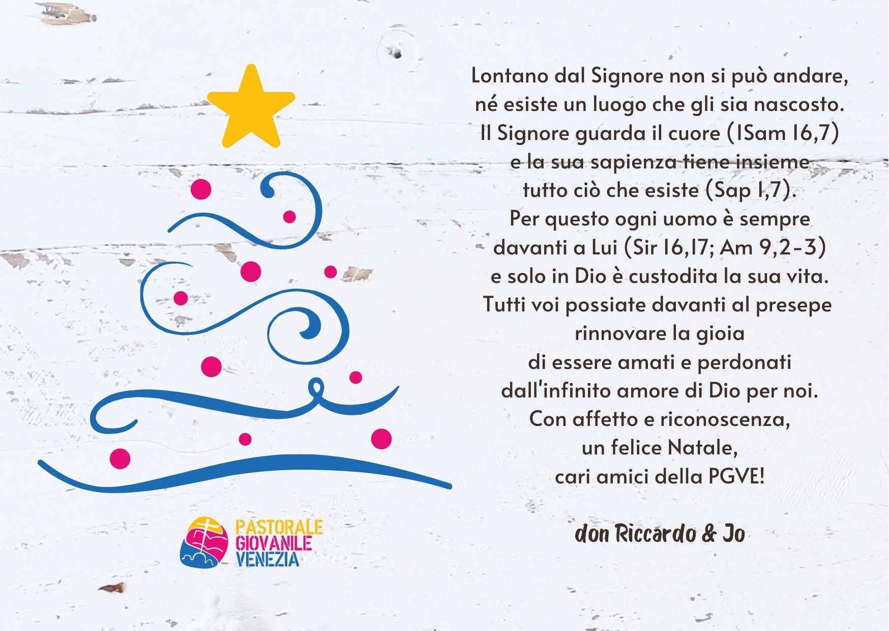 Auguri!!! Pubblicato il Dicembre 21, 2021 - News A tutti i ragazzi, adolescenti, giovani, educatori, sacerdoti, religiosi/e… Buon Natale!!!