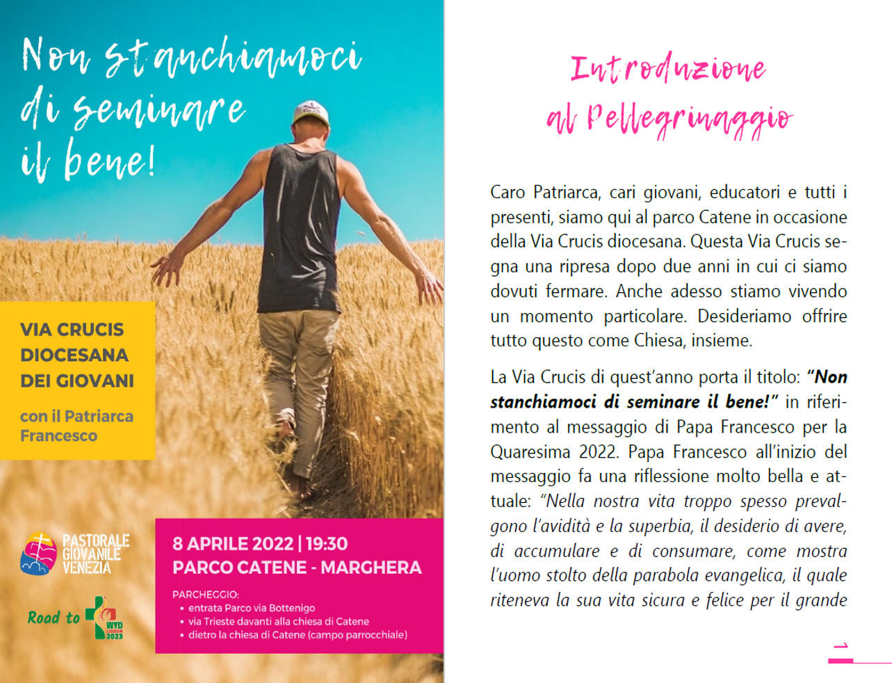 Via Crucis 8/4: libretto Pubblicato il Aprile 8, 2022 - News Partecipa alla Via Crucis diocesana dei giovani col Patriarca Francesco, scarica il libretto! LIBRETTO_ViaCrucis2022-DEF
