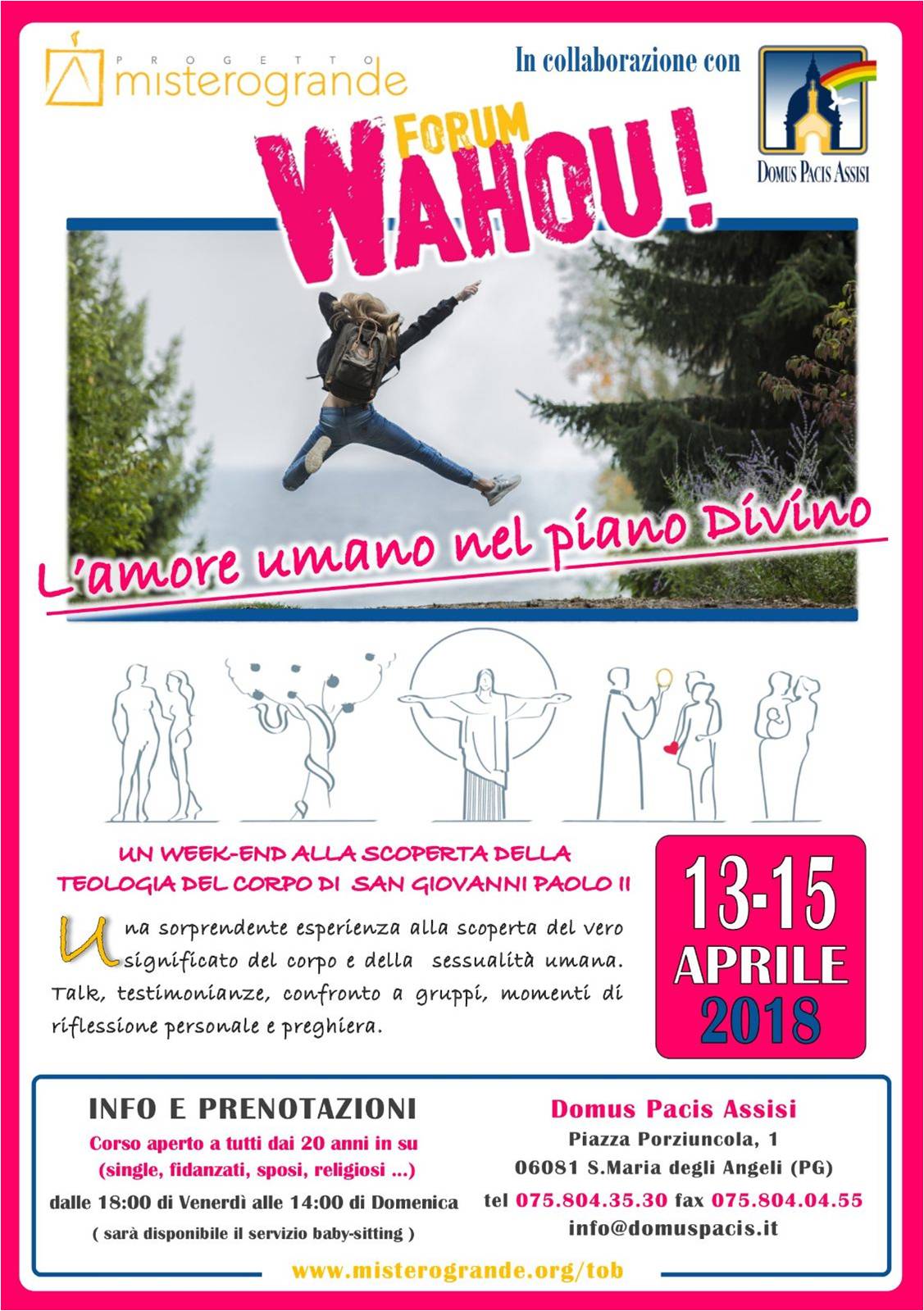 Alla scoperta della teologia del corpo di GPII Pubblicato il Marzo 8, 2018 - Archivio news Un fine settimana ad Assisi per meditare e confrontarsi sul tema dell’amore umano nel piano divino, da farci un serio pensiero 😉