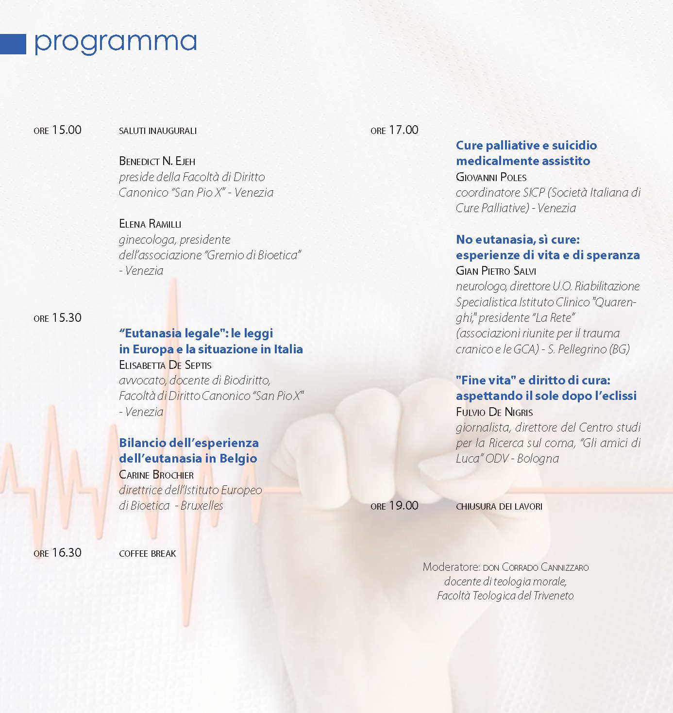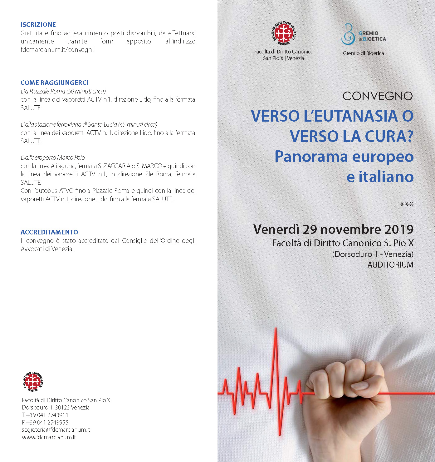 Il convegno è promosso dalla Facoltà di Diritto Canonico Pio X e l’Associazione “Gremio di Bioetica”, la cui Presidente è la dott.ssa Elena Ramilli, ginecologa, tra le docenti del corso “Educare all’affettività, alla sessualità e all’amore” promosso dalla Past. Familiare di Venezia.