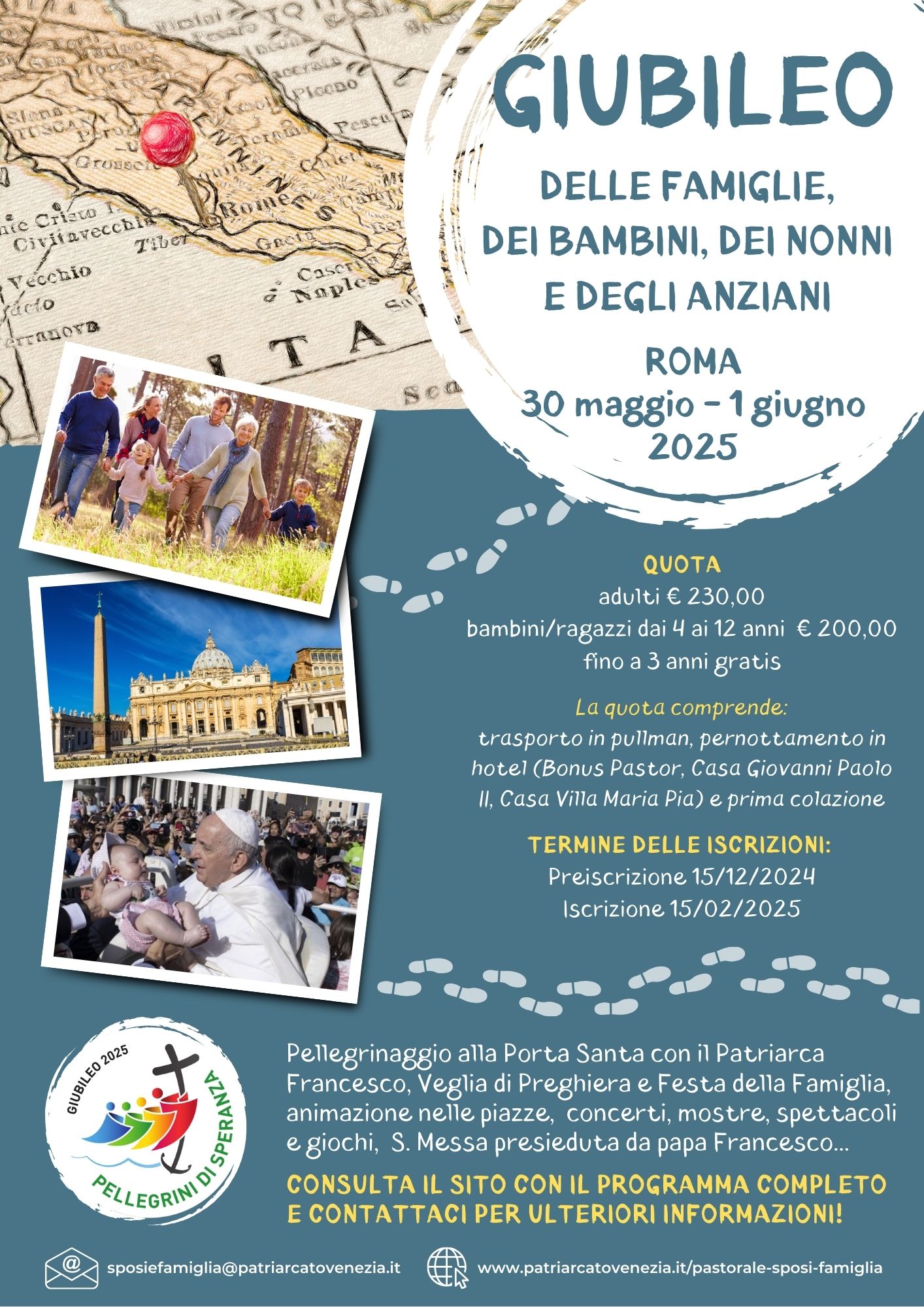 ELENCO PARTECIPANTI da compilare e restituire alla Segreteria esclusivamente in formato EXCEL (no PDF, no JPG): GIUBILEO_FAMIGLIE_2025_Iscrizione_singoli-famiglie-gruppi