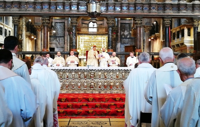 Due sono le grandi convocazioni in cattedrale nel giorno del giovedì santo (13 aprile): alle ore 9.30 mons. Moraglia presiede la S. Messa “Chrismatis” con la benedizione degli olii santi, alla presenza dei sacerdoti della Diocesi veneziana mentre alle 18.00 inizia la S. Messa “in coena Domini” con il rito della lavanda dei piedi e la reposizione del SS. Sacramento (saranno presenti a questa celebrazione la Caritas diocesana, l’Ordine di Malta, l’Ordine del Santo Sepolcro, le Arciconfraternite e le Scuole Grandi della città); al termine, e fino alle ore 21.00, la basilica rimane aperta per un tempo di veglia e adorazione.