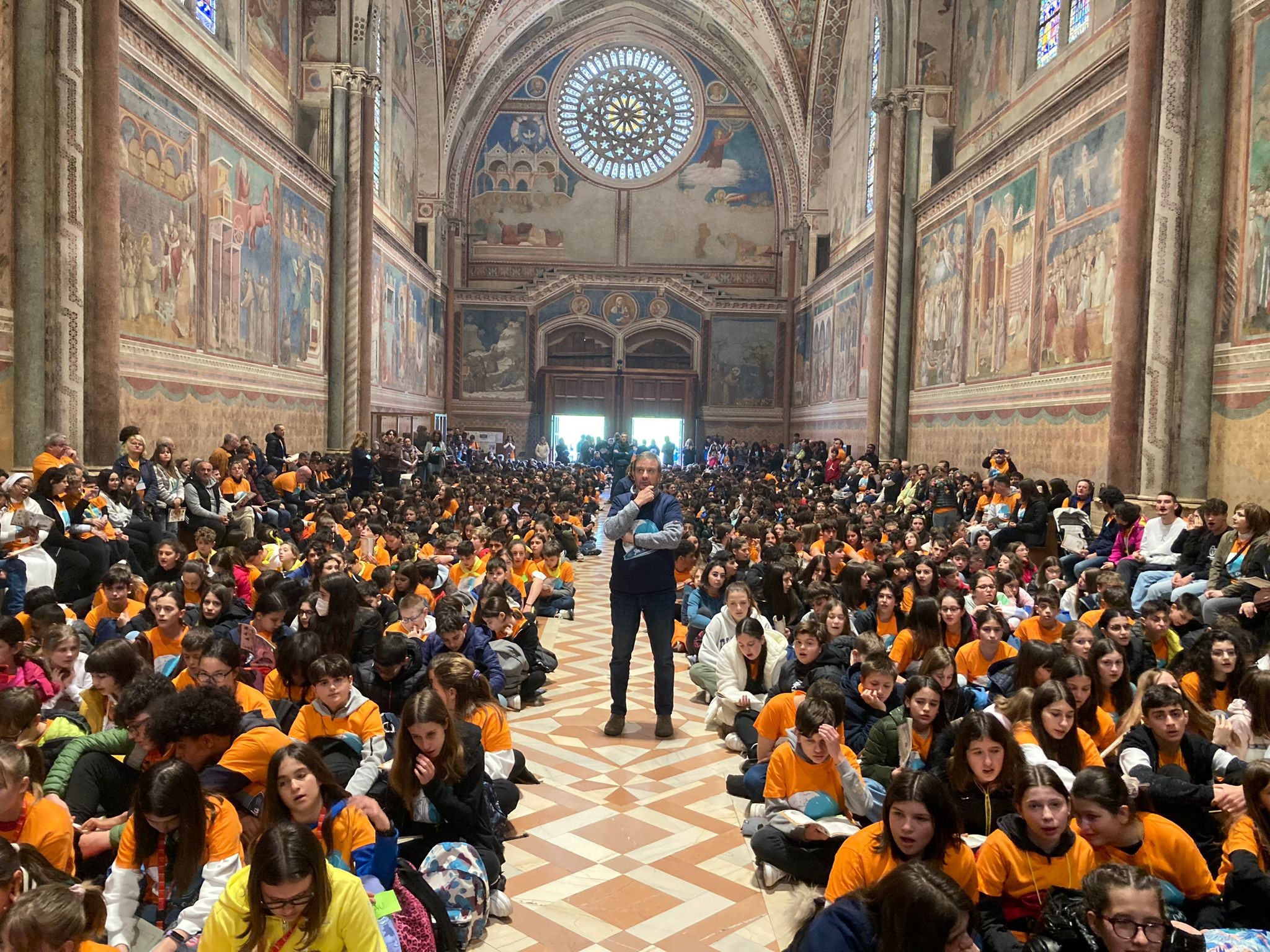 I 1900 ragazzi delle comunità veneziane sono stati accolti dal Padre Custode del Sacro Convento di Assisi, fra Marco Moroni e dalla sindaca di Assisi Stefania Proietti.
