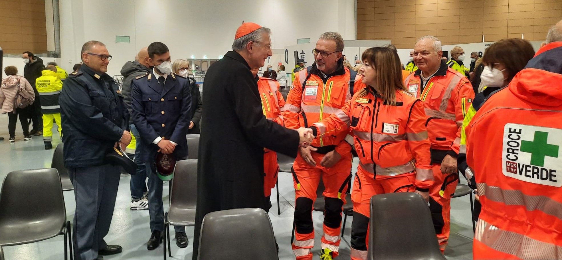 Il Patriarca Francesco Moraglia si è recato questo pomeriggio presso il PalaExpo a Marghera, che è stato per lungo tempo centro vaccinale e di prevenzione per l’Ulss3 Serenissima, per celebrare una delle Messe che precedono e introducono alla solennità del Santo Natale insieme agli operatori della sanità, ai volontari e alle forze dell’ordine, ossia con tutti coloro che molto si sono prodigati nel tempo della pandemia. La celebrazione si è svolta su espresso invito del Direttore Generale dell’Ulss3 Edgardo Contato ed è stata anche l’occasione per ringraziare del lavoro svolto in questi tre anni da tutti i medici, i dirigenti, gli infermieri e gli operatori.