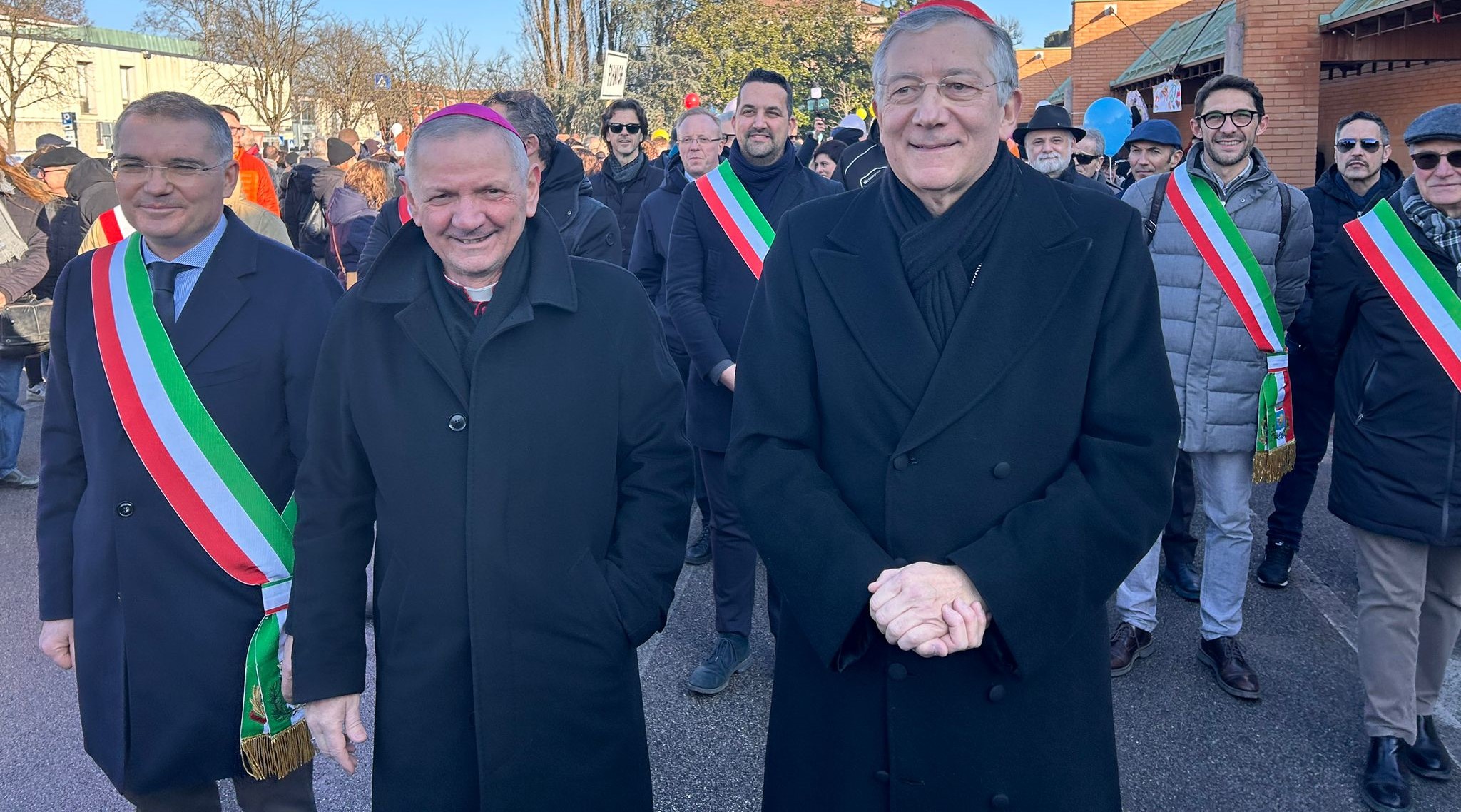 Si è svolta a Dolo – nel pomeriggio di domenica 28 gennaio 2024 – la Marcia della Pace interdiocesana dal titolo “Algoritmi di pace e alla presenza del Patriarca di Venezia Francesco Moraglia e del Vescovo di Padova Claudio Cipolla. Hanno partecipato anche, oltre al Sindaco di Dolo Gianluigi Naletto, anche gli amministratori di Fosso’, Pianiga, Fiesso d’Artico, Camponogara, Vigonovo, Campolongo Maggiore, Campagna Lupia e alcuni vicesindaci e assessori dei comuni di Padova, Mira e Stra.