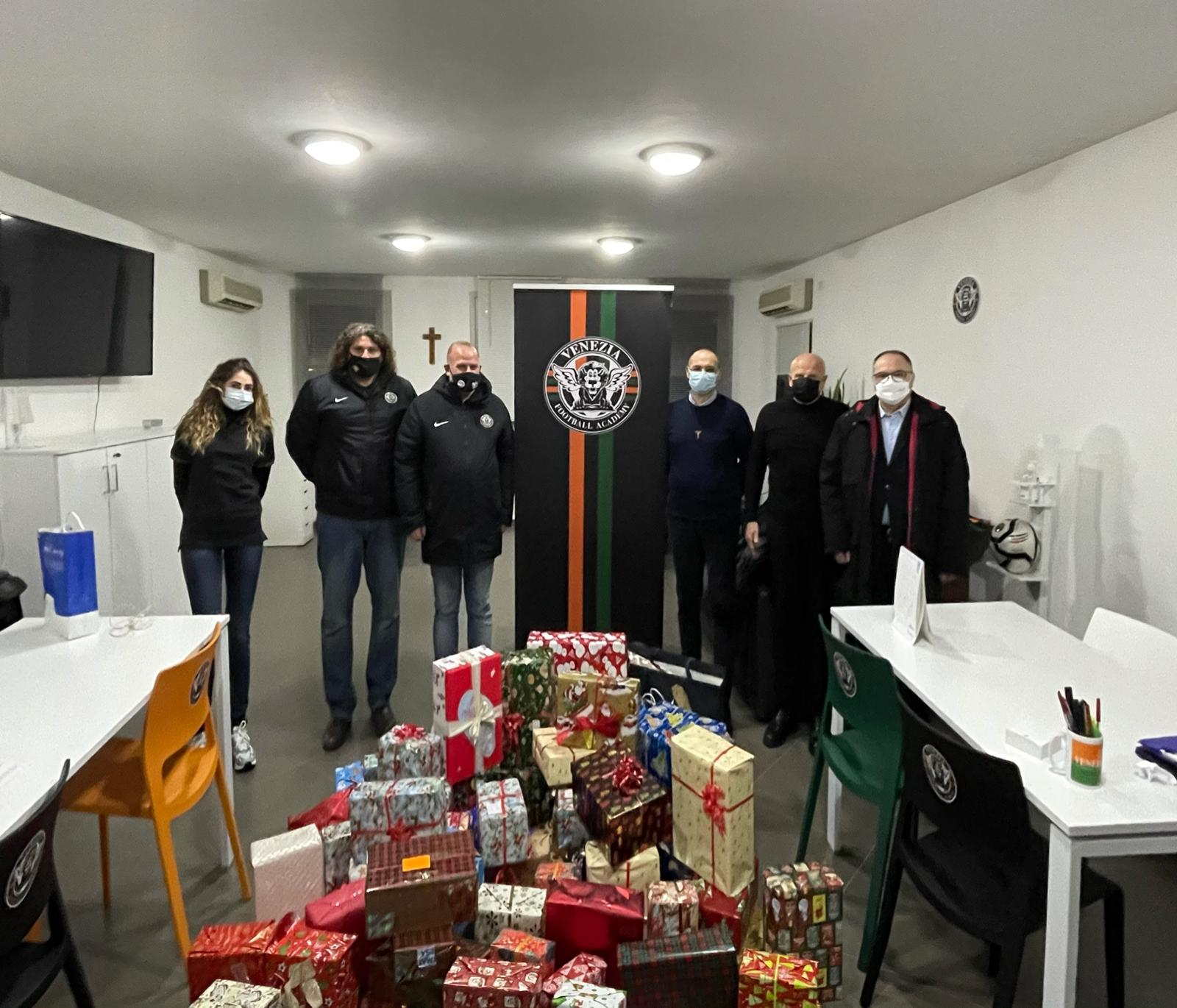 Nel pomeriggio di martedì 12 dicembre il Venezia Football Academy, associazione che costituisce una scuola di calcio e promozione sportiva per bambini e ragazzi associata al Venezia FC, ha donato alla Caritas veneziana 150 scatole regalo contenenti indumenti e libri di testo per bambini, ragazzi e adulti, al fine di consentire a molte persone sole o in difficoltà economica di poter ricevere un segno di sostegno e affetto in questo Natale segnato dalle crisi della pandemia. La consegna è avvenuta presso il centro pastorale diocesano “Cardinale Urbani” di Zelarino: il presidente dell’Academy Alessandro Piovesan ha consegnato i doni al direttore della Caritas veneziana, diacono Stefano Enzo. Ora la Caritas provvederà alla distribuzione, facendo leva sulla rete dei gruppi parrocchiali.