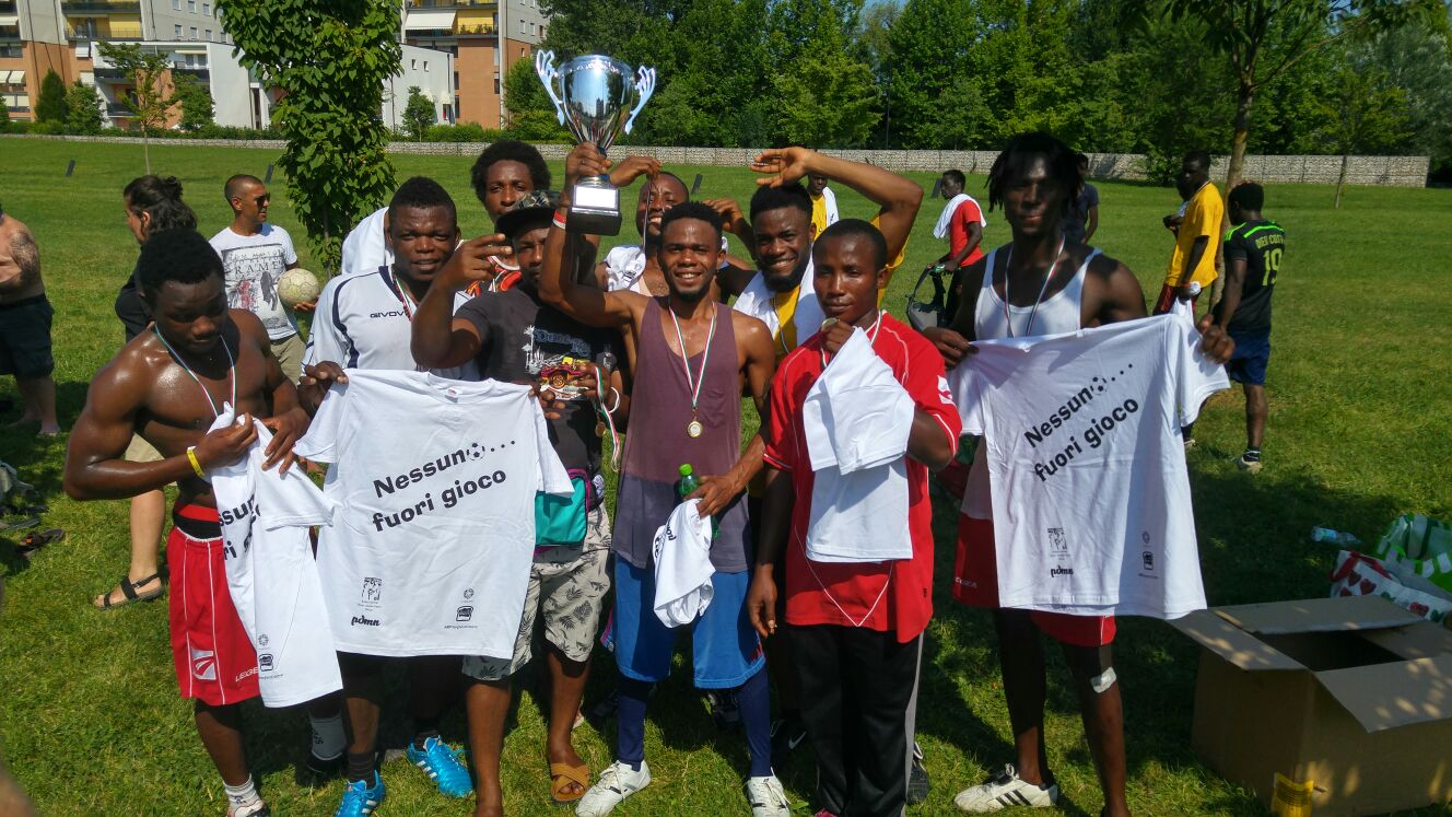 Domenica 26 giugno il sole è alto e il caldo si fa sentire. Sul campo da calcetto si stanno dando battaglia una decina di ragazzi che arrivano da lontano. Kenya, Mali e Nigeria: sono queste solo alcune delle terre da cui provengono i protagonisti della finale del torneo di calcio a 5 “Nessuno Fuorigioco”, organizzato al parco di Catene di Marghera dai ragazzi di Prove di un Mondo Nuovo, già protagonisti in questi anni grazie del progetto di volontariato “72 ore con le maniche in su”. Questa volta però l’associazione ha voluto sperimentare qualcosa di nuovo: «L’idea era quella di permettere ai ragazzi che hanno partecipato alle 72 ore e anche ad altri giovani della zona di conoscere, in un contesto diverso, gli ospiti di alcune delle realtà con cui collaboriamo per realizzare il nostro progetto di volontariato»: queste le parole di Denis Baldan, uno dei fondatori del gruppo. Al torneo hanno infatti partecipato, oltre ad alcune squadre di ragazzi, anche due team composti dagli ospiti di due strutture della Provincia: Casa San Raffaele, il centro gestito dalla Caritas che a Mira si occupa di prima accoglienza per persone straniere, e Emmaus, la comunità di recupero per tossicodipendenti, a Zelarino, gestita dall’Opera Santa Maria della Carità, nonché due altre squadre formate da migranti che alloggiano nei centri di Malcontenta e Mariport. «L’occasione mi sembra sia stata sfruttata al meglio, si potrebbe anche ripetere l’iniziativa», dice soddisfatto, a fine giornata, il vicario episcopale don Dino Pistolato, arrivato per premiare tutti i partecipanti con magliette e medaglie offerte dall’Associazione “Il Buon Samaritano” Onlus, finanziatrice dell’evento.