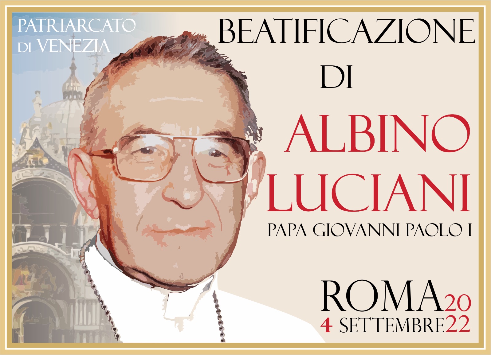 Come già annunciato domenica 4 settembre a Roma Papa Francesco annovererà tra i Beati papa Giovanni Paolo I, il nostro indimenticato Patriarca Albino Luciani. La Diocesi ha organizzato un pellegrinaggio diocesano a Roma dal 2 al 4 settembre 2022 per partecipare a questa celebrazione. Si stanno raccogliendo le iscrizioni e il termine è stato prorogato al 31 maggio 2022. Già un bel numero di persone ha aderito alla proposta: abbiamo ancora dei posti a disposizione, vi invitiamo quindi a promuovere e… a raccogliere l’iniziativa.