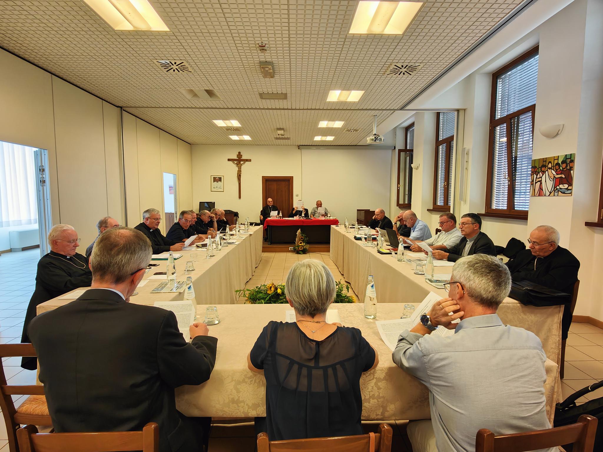 Nella giornata di oggi è continuato l’incontro ufficiale della Conferenza Episcopale Triveneto con all’ordine del giorno comunicazioni ed approfondimenti su numerosi ed importanti temi tra cui le missioni “ad gentes” in atto nelle varie parti del mondo (da parte delle Diocesi o in collaborazione con particolare riferimento a quella triveneta in Thailandia) e l’esperienza dei sacerdoti “fidei donum”, l’attività del Servizio regionale per la tutela dei minori e delle persone vulnerabili (impegnato dal 2019 in attività di formazione, informazione e condivisione di esperienze tra i referenti diocesani e gli esperti del settore), l’incontro con i responsabili della commissione regionale Famiglia e Vita (per fare il punto del cammino compiuto e lanciare il confronto su alcune possibili piste di lavoro per il futuro), l’aggiornamento su alcuni prossimi appuntamenti ecclesiali tra cui il convegno liturgico delle Chiese del Nordest che vivrà il suo momento culminante sabato 30 settembre p.v. a Verona.