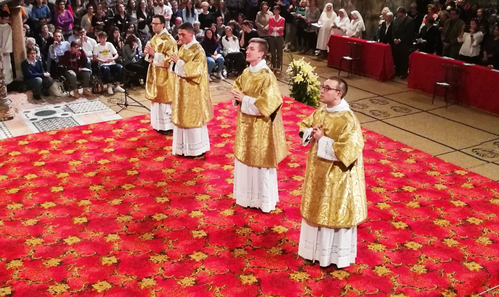Quattro studenti del Seminario Patriarcale di Venezia vengono ordinati diaconi, in vista del sacerdozio, nel pomeriggio di domenica 14 ottobre 2018 alle ore 17.00 nella basilica cattedrale di S. Marco per l’imposizione delle mani del Patriarca di Venezia Francesco Moraglia che presiederà la S. Messa solenne.