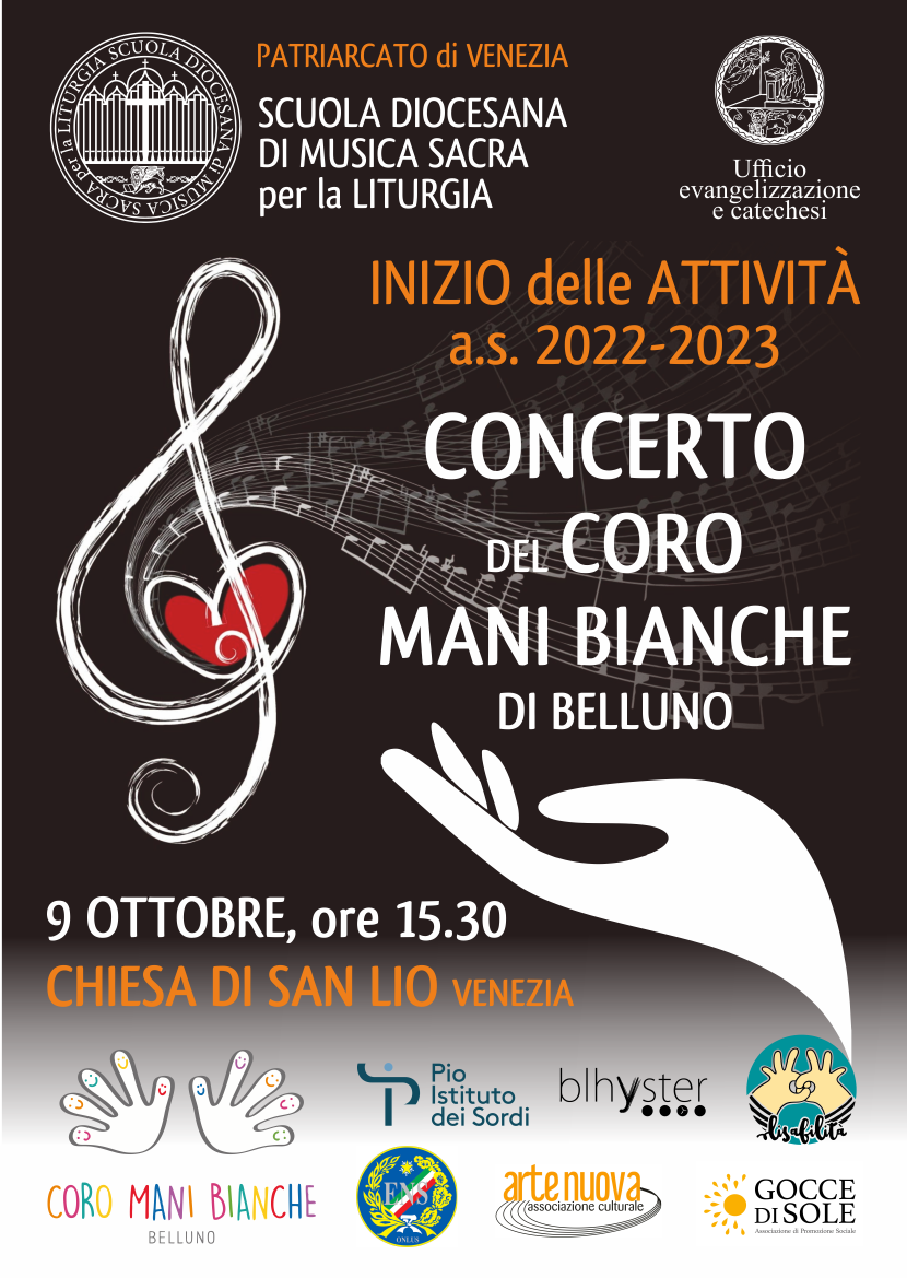 Domenica 9 ottobre: CONCERTO del CORO MANI BIANCHE di Belluno, h 15.30, chiesa di San Lio