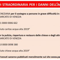 Venezia, 10 marzo 2020 A causa delle misure preventive legate al Covid-19, gli uffici di Curia da mercoledì 11 marzo 2020, fino ad altra indicazione, continueranno a lavorare, ma essendo accessibili da parte del pubblico solo previo appuntamento telefonico. Per le pratiche dell’ufficio matrimoni, si prenda contatto direttamente con don Pierpaolo Dal Corso, sia per la sede di… » continua