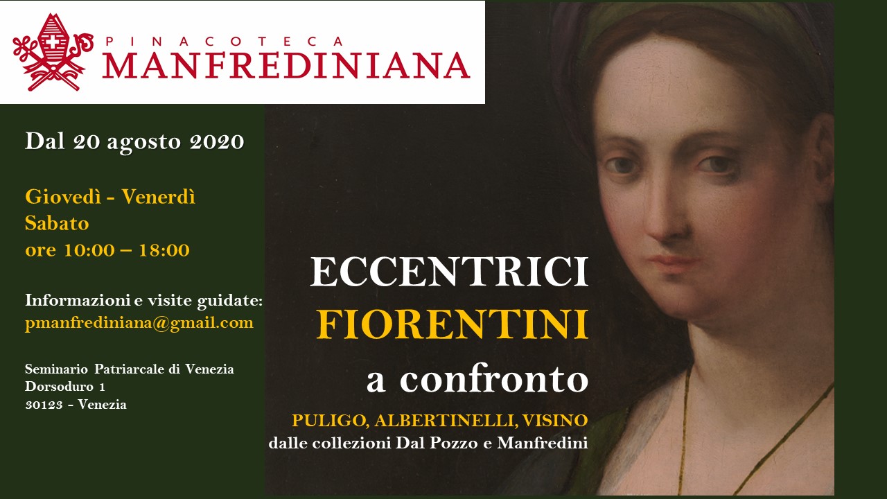 “Eccentrici Fiorentini” è la mostra aperta dal 20 agosto alla Pinacoteca Manfrediniana, in Punta della Salute a Venezia, che dà luce a tre artisti fiorentini del ‘500 considerati minori, facendo il punto su nuove scoperte e misteri ancora da svelare. L’esposizione, curata da Andrea Donati e Silvia Marchiori, presenta al pubblico tre opere in olio su tavola dei primi anni ’20, tra loro accostate per una lettura simultanea e unitaria, dove attraverso un lavoro filologico è stato possibile rivedere la storia conservativa e attributiva. I dipinti sono di tre pittori che ruotarono attorno alla figura dell’artista Andrea del Sarto: “Santa Caterina D’Alessandria” di Domenico Puligo, in prestito dalla collezione Dal Pozzo, e le opere della collezione Manfredini “Madonna con Bambino” di Mariotto Albertinelli e “Deposizione di Cristo dalla croce” di Visino.