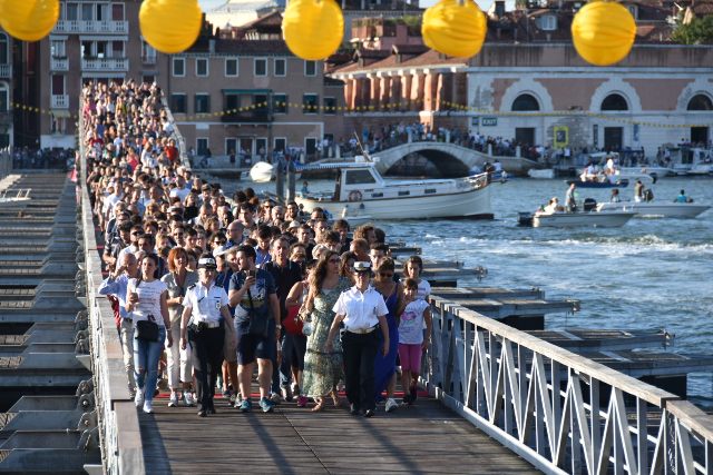 - Sabato 14 luglio – alle ore 19.00 e alla presenza del Patriarca, del Sindaco e delle autorità cittadine – viene aperto e inaugurato ufficialmente il ponte votivo che, attraversando il canale della Giudecca, conduce direttamente al Tempio del Redentore dove subito dopo, alle ore 19.30, sarà celebrata l’Eucaristia. Un’altra messa è prevista anche alle ore 24.30, immediatamente dopo i fuochi d’artificio.