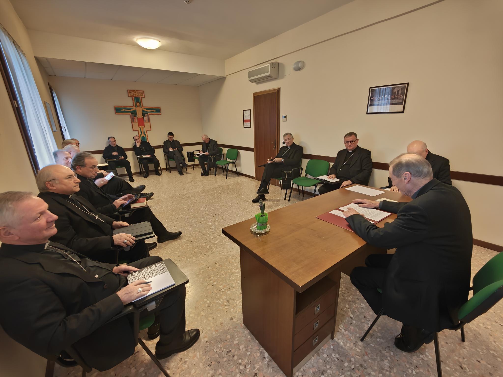 Nel pomeriggio di venerdì 1 marzo, sempre a Costabissara (Vicenza), i Vescovi hanno poi svolto anche una riunione ordinaria della CET che è stata in buona parte incentrata sull’incontro con i vertici della Caritas Italiana, ossia con il presidente mons. Carlo Roberto Maria Redaelli (già membro di questa Conferenza in quanto Arcivescovo di Gorizia) e con il direttore don Marco Pagniello; è stata l’occasione per riflettere sulle finalità e le linee di azione della Caritas Italiana e per analizzare – anche sulla base di un recente sondaggio – il rapporto esistente nelle varie realtà tra la Caritas, le Diocesi e i Vescovi. Si è parlato inoltre del prossimo convegno nazionale Caritas che si terrà in territorio triveneto dall’8 all’11 aprile 2024 a Grado (con alcune tappe a Gorizia): avrà come titolo «Confini, zone di contatto e non di separazione. “Non passare oltre senza fermarti” (Genesi 18,1-8)» e rappresenterà una preziosa opportunità non solo d’incontro tra i delegati delle Caritas diocesane provenienti da tutta Italia, ma anche quale occasione di conoscenza, condivisione e crescita per l’intero territorio.