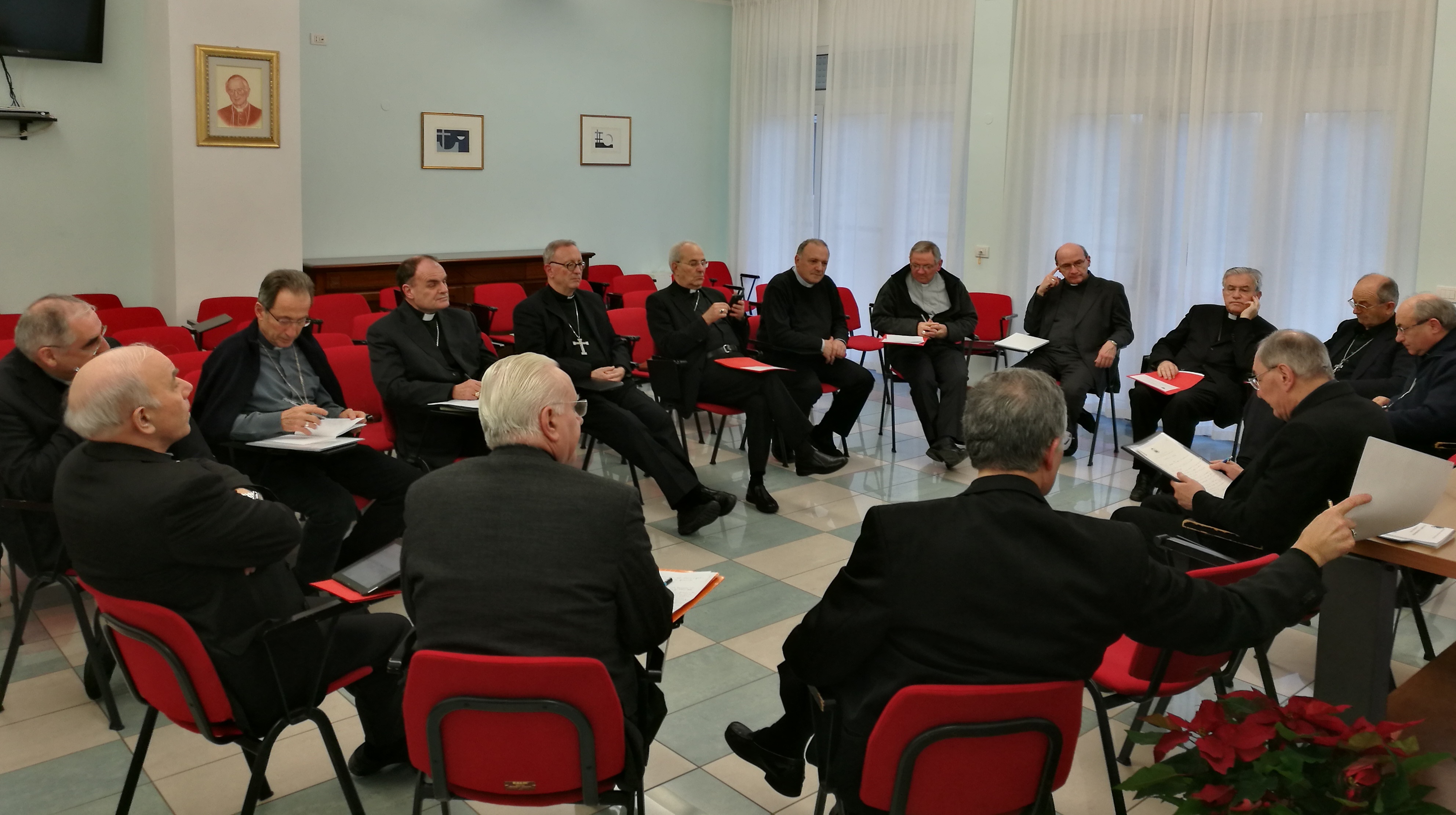 Nella prima parte della “due giorni” i Vescovi hanno ascoltato l’intervento e la testimonianza di alcune persone significative che hanno raccontato, a loro volta, come il Vescovo è percepito oggi e che cosa da lui ci si aspetta nel mondo ecclesiale e nella società. Hanno partecipato a questa sessione dei lavori il giornalista di Avvenire Umberto Folena che ha evidenziato come il Vescovo sia spesso oggetto di richieste pressanti ma contraddittorie tra loro o sia spesso “classificato” e sottoposto ad etichette fuorvianti, il monaco camaldolese e sociologo Giovanni Dalpiaz che ha cercato di raccogliere impressioni e diverse modalità di “riconoscimento” che riguardano il Vescovo e che arrivano da parte dei giovani e dei preti in un mix di vicinanza e lontananza, e infine la prof.ssa Pina De Simone – docente di etica, filosofia delle religioni e teologia – che ha sottolineato il carattere di “unicità” che appartiene ad ogni Vescovo soffermandosi poi sull’esigenza, non sempre bene espressa sia da chi è dentro la realtà ecclesiale sia da chi rimane “sulla soglia”, che il Vescovo sia soprattutto “un padre e un maestro”.